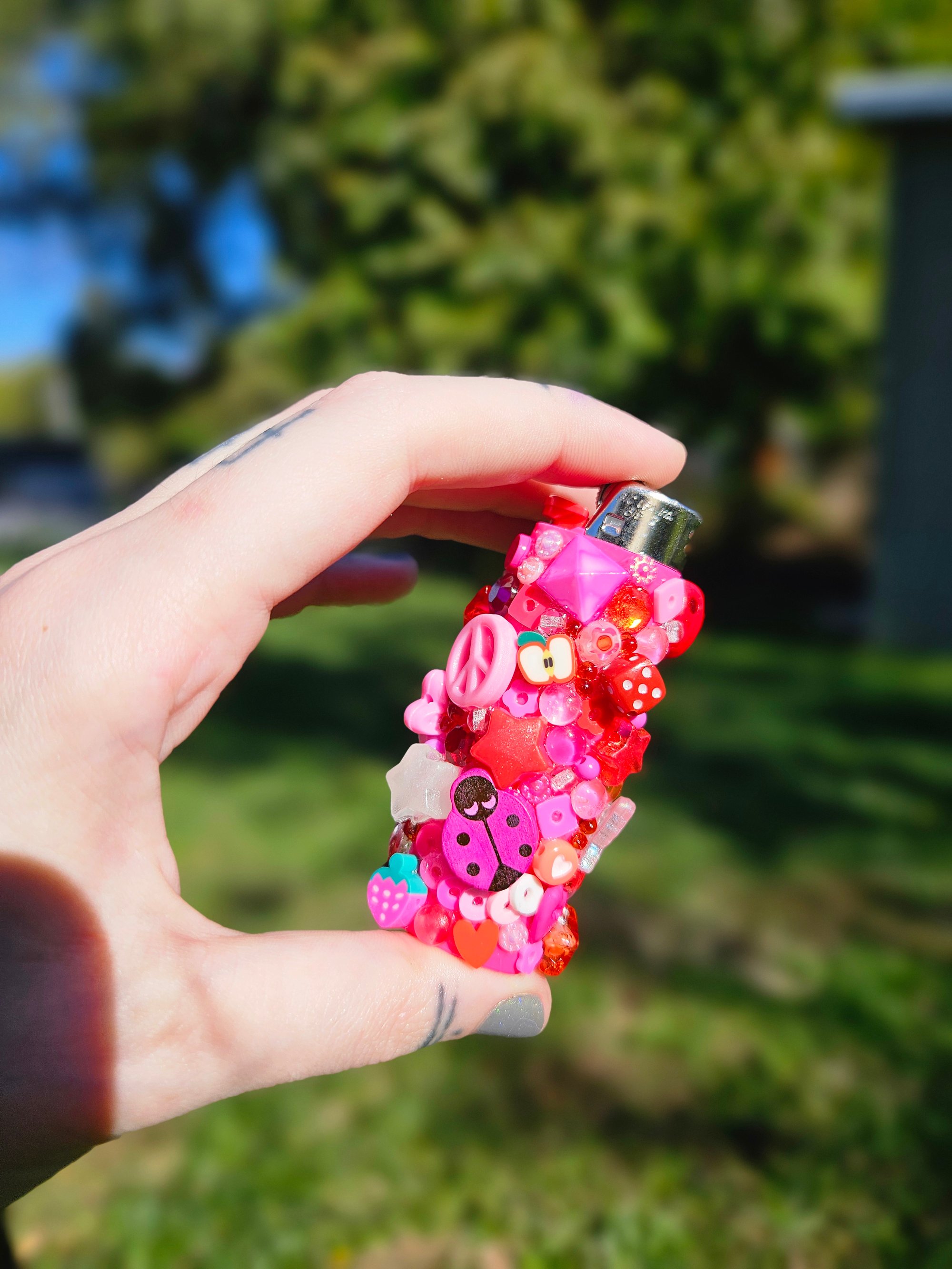 Collage/bedazzled lighter, applied with E6000 and sealed with clear enamel! Standard refillable BIC lighter.